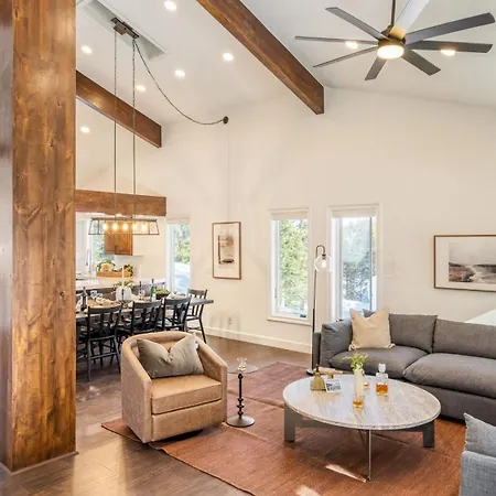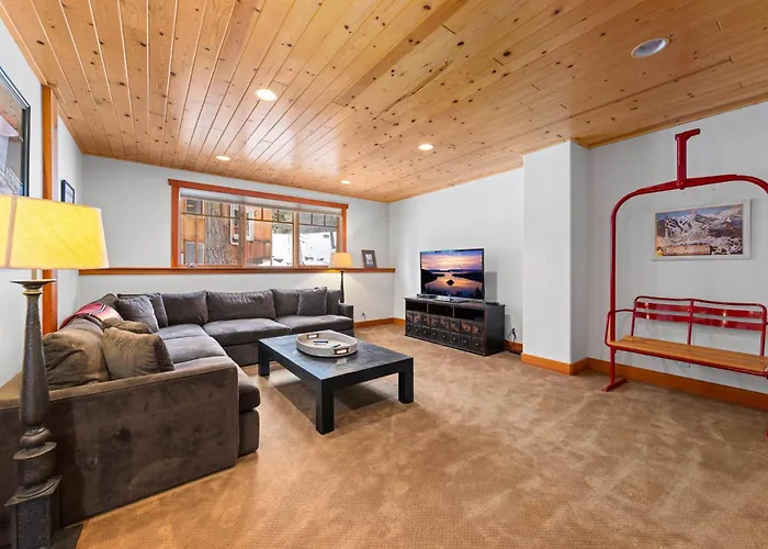 The 4-bedroom Alpine Diamond - Hot Tub, Pet Friendly, Shuttle To Slopes! Villa Alpine Meadows, located a 10-minute ride from Lakeview Chair, invites guests to relax in a Jacuzzi. Featuring a patio, this Alpine Meadows villa is situated a 10-minute drive from Squaw Valley Resort.